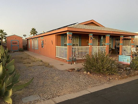 COYOTE RANCH 55+ GATED ACTIVE ADULT PARK 9351 E 28th Street # 23 Yuma, AZ 85365 Monthly Land/Lot Lease $753.00 Park Metered water: base rate $18.91 sewer $36.91 trash $29.22 2007 CAVCO 26X55 3 BEDROOM/2BATH FULLY FURNISHED FRONT PORCH KITCHEN with ELECTRIC STOVE/OVEN FRIDGE with BOTTOM FREEZER DISHWASHER R/O SYSTEM CABINETS with PULL OUT DRAWERS LOT OF COUNTERS SPACE LOTS OF KITHCHEN CABINETS PANTRY FULL SIZE WASHER/DRYER MASTER BEDROOM with ADJUSTABLE QUEEN BED WALK IN CLOSET MASTER BATH ESUITE with DOUBLE SINKS WALK IN SHOWER BEDROOM #2 OFFICE BEDROOM #3 SEWING ROOM MAIN BATH with WALK IN BATH and SHOWER 2025 LARGE LINEN CLOSET TANKLESS HOT WATER HEATER 2025 HEATPUMP REPLACED 2022 SOLAR PANELS $57 A MONTH FLOORING 2025 CEILING FANS SCREEN ROOM SCREEN PAVED CARPORT STORAGE SHED with TOOLS PAVED BACKYARD with FIREPITS RV PARKING with STORAGE SHED