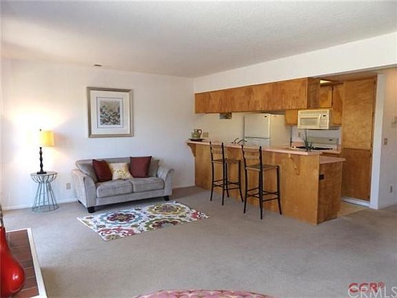 Casa Del Monte condominium is located walking distance to a sandy beach, open space hiking trails and restaurants. This home is in move-in condition with newer paint and carpets. The open concept floor plan features a fireplace, breakfast bar and large picture windows to take in the great views. There are three bedrooms two and one half bathrooms and plenty of storage space. The single car garage has lots of storage as well. There is a nice patio with a small garden area and very low maintenance. This home has plenty of light and great walls for art. Located right across the street from the vast Hearst Ranch with views of Zebras and other wild life as they graze on the rolling hills. The washer, dryer and refrigerator are included. This property is located on a cul-de-sac street.