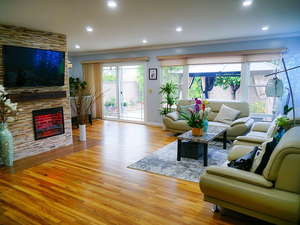 This is a spectacular house. With 3 bedrooms with nice windows view from back yards and front yard . Large living room opened to dining area to kitchen throughout backyards view is perfect for relax . AC and gas heating ready. This house located in nice neighborhood and quite friendly. Two cars attached garage . Electrical door locked. Green back yard with passion fruits and a 12'X14' pergola fantastic patio . 2 clean bathrooms. Tenant is responsible for billing trash/ water/gas/electric . 1 year term . If you want to continue will sign for 2 years.
