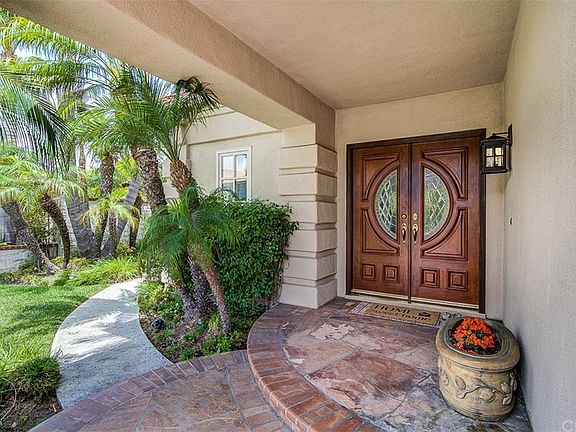 This stunning estate sitting on a corner lot in the highly desirable, gated community of Huntington Place has been meticulously maintained and offers the largest, most versatile floor plan in the community. Each bedroom has access to its own private bathroom, and the lower level hosts a convenient downstairs bedroom. The towering ceilings and abundance of windows allow for plenty of natural light to flow throughout the space, cultivating a bright and airy feel that's immediately noticeable upon entry. The stunning kitchen showcases beautiful marble floors, granite counters, custom backsplash, an oversized SubZero refrigerator, and atrium-style windows overlooking the picturesque greenery of the backyard, creating a wonderful indoor-outdoor feel. The second level hosts two guest bedrooms and the primary suite, but one of these "guest" bedrooms can function easily as an additional primary, as the floor plan has been modified to create an open feel and additional space with an attached bathroom. The palatial primary bedroom is truly a wonderful retreat, with its vaulted ceilings, fireplace, step-down sitting area, and primary bathroom with a large soaking tub, walk-in shower, dual vanities, and walk-in closets. This home is truly an entertainer's dream, easily capable of hosting large family gatherings and events. Located just over a short distance to the beach and the shopping and eateries of Pacific City and Main Street, this Huntington Place home can't be missed.