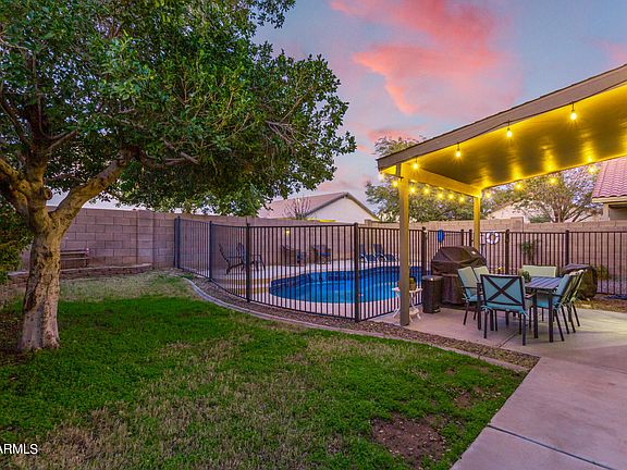 Welcome to your new home in Mesquite Canyon of East Mesa! Tucked away on a private lot, this home offers plenty of space to spread out with 4 bedrooms + a loft, a separate family & living room, and a perfectly-sized backyard with a fenced-in pool. You will love the open kitchen with unique concrete countertops, stainless steel appliances, and a pantry closet. The spacious primary suite offers a double-door entry, a separate tub & shower, and a large walk-in closet. Enjoy AZ living with your covered patio, private pool, and grassy yard space. Other home features include a 2-car garage, soft water system, & a double-wide side gate. Mesquite Canyon offers several parks & playgrounds, two basketball courts, picnic ramadas, and biking/walking paths. Located near the 202. PLUS, Gilbert schools!