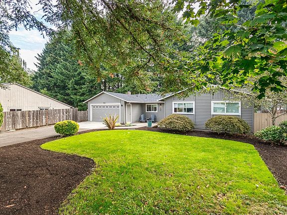 Lovely remodeled one level in great Tualatin neighborhood. Chic curb appeal. Open, versatile floor plan featuring 2 family rooms, one with wood burning fireplace and the other is a great place to gather off the kitchen. Large eating area. In 2016 new roof, paint, A/C, furnace, hot water heater. Updated baths, kitchen with new cabinetry and counters. Great locale near Tualatin High, minutes to shopping, parks and community gardens.