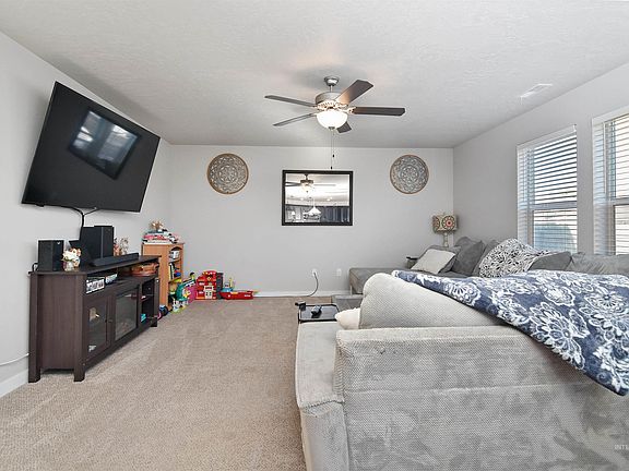 Discover Modern Comfort and Style! This 4-year-old gem offers 3 beds plus a 11x10 office and a large bonus room, boasting upgrades throughout including dual zone heating and cooling, smart thermostats, solar panels and more! The kitchen features a large island, large pantry, stainless steel appliances, and offers an open floorman to the dining & living room. Enjoy the spacious master suite complete with dual vanities, a walk-in closet, and a laundry room connection. Outside, relish in a spacious yard with a large outdoor patio, planter boxes and drip lines. Community amenities include a pool, tennis courts, basketball courts, playground, and clubhouse. Experience luxury, functionality, and community living in Southwest Boise. VA assumable loan available at a 3.25% interest rate! Solar panels (with a power bill at only $5 a month)!