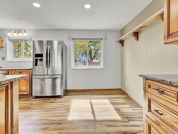 Welcome to Your Dream Home in Littleton’s Meadows Community! This beautifully updated home seamlessly blends modern convenience with rustic charm. Featuring 3 bedrooms, 3 bathrooms, and a spacious 2-car garage, it’s packed with upgrades. The gourmet kitchen shines with custom granite countertops, beetle kill pine accents, a chef-quality Wolf 6-burner gas stove, built-in microwave with a warming drawer, multiple pull-out spice racks, and a convenient lazy Susan for extra storage.