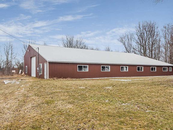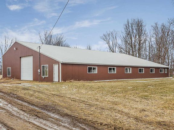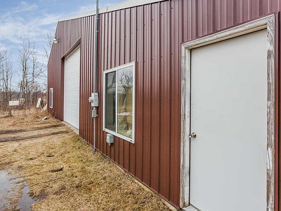 9 acres of land with Large 60X100 insulated steel roof polebarn with full bathroom including a stand up shower, 200 amp electrical service and 14 ft garage door. Lot is partially wooded and is farmable.