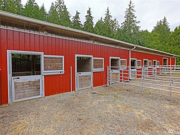 Looking for that magical place to train your equestrian and build your dream home? Adjustable stalls, turnouts, custom shower, heated tack and viewing room, covered storage for hay and all the equipment, Olympic sized covered area with Atwood Footing Perfection! Additional lot included for your building pleasure. Additional acreage available for expansion. 4 minutes to Seattle Ferry! Access only by appointment. Gated. (Taxes and Sq Ft reflect three parcels).