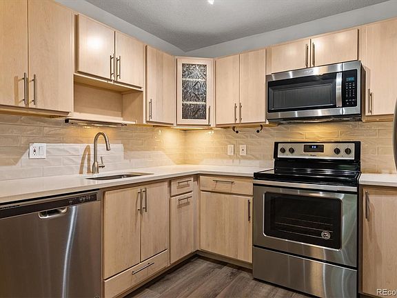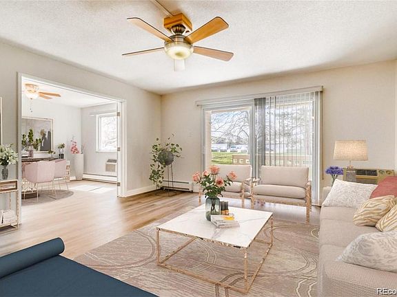 Beautifully remodeled, 2bedroom, 2bathroom 1200 sf home in Denver's Premier 55+ Community! Move right in! Enjoy first floor living with a walk-out onto your open lanai that has a beautiful courtyard view of lush grass, vibrant flowers and lots of trees! Perfect for pets! Underground parking that is steps from the entrance in the garage! One of the best locations in Windsor Gardens being only steps away from the community center and all the amenities! Light and bright! Maple custom cabinets by Bridgewood custom cabinetry. COREtec Pro Plus waterproof flooring in kitchen living room, den, hall and bathrooms. Brand new Dream Weaver Jackson Hole 1 carpet with Karasten padding in master bedroom and closet. Sherwin Williams paint throughout. Bonus room has new LED light, perfect for a crafts room, or office. New Whirlpool appliances, that include self cleaning electric range, refrigerator with ice maker, dishwasher and microwave. Quartz counter tops with deep sink in kitchen. Designer glass backsplash! Undercabinet lighting in kitchen. Brand new bathrooms including vanity, designer finishes, lighting, mirrors, toilets and new tile. Three a/c units-one in each bedroom and in the living room. Three ceiling fans. New doors featuring solid French doors, so second room becomes a second bedroom with complete privacy when doors are closed. Underground parking space # 80 just steps away from building entrance. This unit is in the perfect location with guest parking, and bus stop steps away. Within walking distance to Windsor Gardens Community Center and all amenities. Amenities on offer include, a nine-hole par-3 golf course, indoor/outdoor pools, a fitness center, spa, classes and much more. For added convenience, the HOA includes PROPERTY TAXES, heat, water, and sewer along with 24hr security, snow removal and trash removal. Plus, the condo is FHA and VA approved. MOTIVATED SELLER! SELLER OPEN TO ANY REASONABLE OFFERS! REVIEW COMPS AND OFFER ACCORDINGLY!