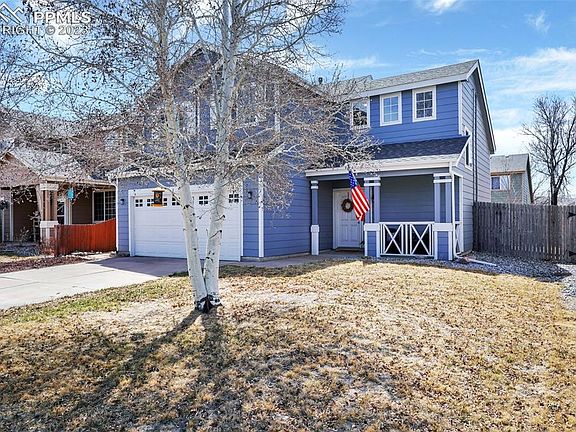 Stop your home search! This stunning, farmhouse chic updated home boasts amazing curb appeal, complete with a covered front porch to enjoy the enviable Colorado sunsets. As soon as you step inside, you will be drawn to the living room that features beautiful wood flooring, vaulted ceilings, and tons of natural sunlight. Continue into the open concept dining/kitchen combo with walkout to the quaint, fenced in backyard. The kitchen features tile flooring, farmhouse chic white cabinets with tile backsplash, and a functional kitchen pantry. The laundry room on main level is located just off of the kitchen, and features extra shelving for storage, ultimately connecting to the two-car garage. A fully updated half bath on the main level finishes off the first level. Head upstairs to explore the master suite, completed with a sliding barn door that leads into the en suite bathroom with vanity and walk in closet. Two additional bedrooms and an updated full bath complete the upper level. Boasting updated light fixtures throughout, as well as central air conditioning, no detail has been overlooked. Great location close to Schriever AFB, Fort Carson and Peterson SFB. This home is turnkey, and the neighborhood is stunning, boasting mature trees, and pride of ownership throughout. Located conveniently off of the Powers Corridor, you are just minutes from the city's best dining, shopping, entertainment, and healthcare options. Schedule your showing today- you won't want to miss this gem!!