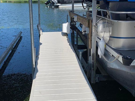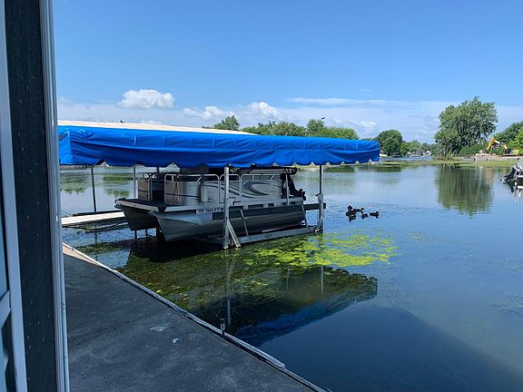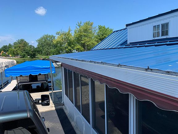 Enjoy the open water view with your own dock just steps from your door. Has electric boat lift. Covered boat dock. This is a year round home living. All appliances remain plus most furniture. The loft over looking is very large. Enough room for several beds. Home has new paint and new flooring. Home has a new metal roof. Also the added sunroom can be heated and cooled for 200 sq. ft. of additional living space. Storage galore for all those extra needs. Retractable awning for more shade. Call today and enjoy those beautiful sunsets and the Great Lake life at Indian Lake. Yearly Lot fees are paid up to April 1. 2023.