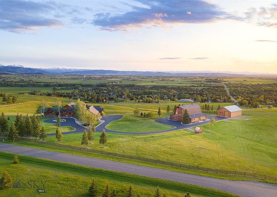 Experience privacy & seclusion at this exceptional, end-of-the-road, 20-acre Bozeman luxury property just 5 miles from downtown. Showcasing peerless craftsmanship & incomparable valley and mountain views, the 7500sf luxury home includes exceptional spaces to enjoy the good life: timber-framed living room w/soaring ceilings; wood-burning, stone fireplace; expansive wall of windows; a chef's dream kitchen w/ Viking, 6-burner range, double ovens+wall oven; center island w/ prep sink; built-in SubZero fridge; beverage cooler. Escape to the main floor master suite w /sitting area and fireplace; to-die-for bathroom/walk-in closet, secluded and private hot tub. 5-ensuite bedrooms. Entertain in the walk-out, lower level theater room w/stone fireplace & wet bar. Includes AC, security system, sound system, in-floor radiant heat. Extraordinary, heated Sports Barn w/ basketball court, bar area, bathroom, 2 storage bays. Plus, new, heated RV barn and all driveways paved. Horses/livestock welcome!