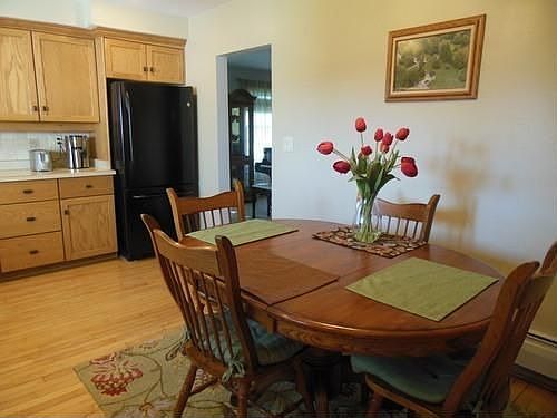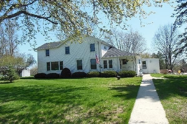 Quality updated & maintained older home in small village. Huge kitchen w/Maple floor, formal DR, family-sized LR. Six panel oak doors, oak trim, open stairway, 4 BR, bath w/double sink, oak vanity, 9.6x8 enclosed porch w/utility sink. Fantastic patio with arbor & fire pit. 2 story concrete block garage (upper floor is a workshop). Newer mound septic system, newer windows, plumbing updates.