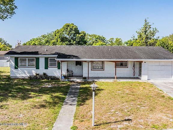 LIVE your BEST LIFE on FLORIDA'S NATURE COAST in this move-in ready - IMMACULATE - 2-bedroom, 2-bathroom, 1-car GARAGE with 6'x6' (approx.) office space, and HUGE PATIO (17.6 x 11.5) situated on a MASSIVE - 1/3 ACRE - CORNER LOT!! (.31acre) Your backyard is FULLY FENCED with two gates! Plenty of room for your BOAT, RV, jet skis - oh - and your pets! NO HOA, NO CDD, and NO FLOOD ZONE! This home offers AMAZING curb appeal - with its welcoming sidewalk leading to your front porch and its EXTRA-LONG DRIVEWAY leading to your garage. (Tons of parking!) Best part - you can be ''neighborly'' yet not on top of your neighbors - with all the space you have here!! Upon entering your home - you're welcomed with a comfortable, open, spacious dining/living room combo that leads to your ENORMOUS PATIO! You can also enter your home through YOUR GARAGE into your kitchen! Your spacious and bright kitchen include white-cabinets, beautiful backsplash, large pantry, stainless steel refrigerator, stove, dishwasher and microwave - ALL INCLUDED - as is the washer & dryer! You'll love the HUGE WINDOW over the sink - where you'll be able to see the Cape Canaveral Space launches & all their glory!! There's LOTS of STORAGE space in this house - coat closet (rare!!), closet for household items (vacuum, etc), and a linen closets!! The oversized primary bedroom (11'.9x15'.2) includes a large walk-in closet and ensuite bathroom with a walk-in shower! Bedroom 2 is also super spacious with the hall bathroom (shower/bathtub) nearby! Entertain or just relax on your HUMONGOUS covered, enclosed, and tiled patio that overlooks your beautiful, private backyard! The GAZEBO & its cover are included! So are BOTH SHEDS in the back! Oh! There is an approx. 6'x6' space in the garage - it makes for an awesome ''MAN-CAVE''! ***** YOU REALLY, REALLY HAVE TO COME SEE THIS PLACE!! **** (Roof-2015 ~ A/C-2019 ~ STOVE, D/W, REFRIG, W&D - 2020 ~ INTERIOR PAINT-2024~ TANKLESS WATER HEATER)