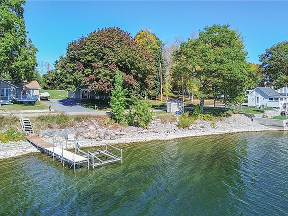 Welcome to your dream retreat on sought-after Pt. Salubrious in Chaumont, NY! This brand-new, stick built saltbox-style cottage sits on an expansive lot with 90 feet of breathtaking waterfront views over Guffin Bay, offering sunrises that will take your breath away. Inside, you’ll find a warm and inviting, furnished one-bedroom, one-bath layout finished in natural knotty pine with white-washed, lofted pine ceilings throughout. The well-appointed kitchen is fully applianced and ready for your culinary creations, while the spacious bath features a walk-in shower and laundry hook-ups. A sliding patio door opens to a full covered front porch—perfect for morning coffee, peaceful reading, or simply soaking in the waterfront views. This property also comes equipped with a waterfront water shed, complete with a brand-new pump and water system including a UV light for drinkable water. A second storage shed out back provides even more storage convenience. Now imagine adding a cute shed out back, creating a bunkhouse for your guests. Is that not perfect! From spring through fall, enjoy fishing, boating, swimming, or simply unwinding in this serene setting. Gather family and friends for weekends on the water, or embrace the quiet solitude this seasonal home has to offer. Just minutes from the village of Chaumont and other charming Lake Ontario waterfront communities, you’ll have easy access to shopping, dining, and entertainment. This home is maintenance free with engineered wood siding and a metal roof. The furnishings, kayaks, row boat, fishing poles, lawn mower, and anything you see on the property is being left for the new owner. Add your personal touches and simply enjoy. Don’t miss your opportunity to own a one-of-a-kind cottage on Guffin Bay—where your perfect seasonal getaway awaits!