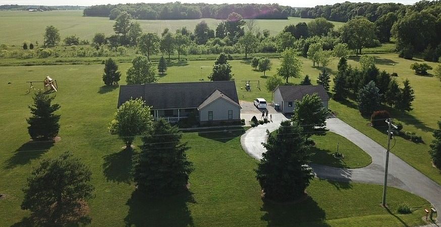 This ranch style home over a full daylight basement sits on over 2 acres in rural Roanoke, has an attached garage, a second detached garage, an above ground pool, and an enclosed porch looking over the scenic rural views. It's got a split-bedroom floor plan, with a large eat-in kitchen, nice sized great room, and an unfinished basement that could be used for so many different things! The master suite has it's own bath and a walk-in closet. Other features and amenities include a covered front porch, nice landscaping, and a circle driveway.