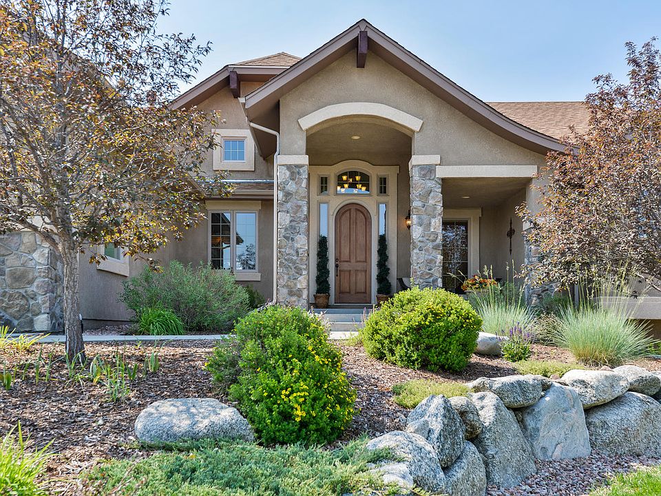 Exquisite Walkout Rancher with mountain views and backing to open space... location is perfection, situated in the coveted Stoneglen neighborhood of Pine Creek Golf Community. Every appointed detail is captured with graceful class, you will have a want for nothing more... spectacular property with beauty inside and out. private park; mountain peace, close in to enjoy every glorious piece of Colorado Springs... close to USAFA; High End Shops; Beautiful Markets; Memorial North, University Health System... you will fall in love!