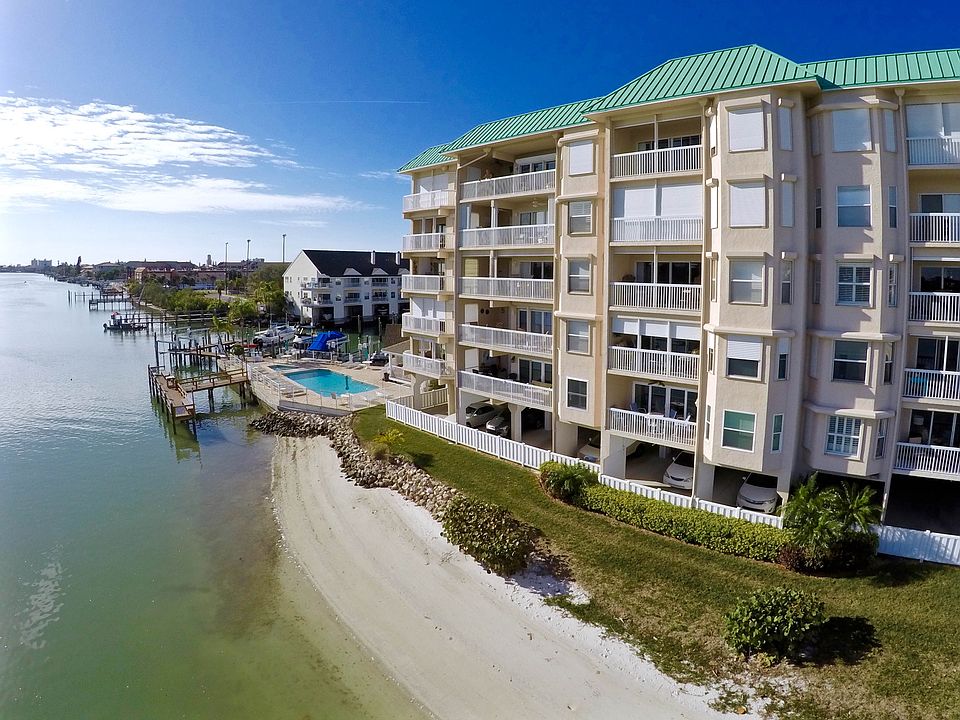 Breathtaking INTRACOASTAL water views from this 2nd floor unit in one of the best condo properties in St. Pete Beach. Rarely available Sanibel model. This 2 or 3 bedroom, 2 bathroom beach retreat offers bright and spacious living areas with an open kitchen, pantry, and breakfast bar. Private split plan master suite with stunning water views, bay window, full size walk in closet, and access to the balcony. The master bath features a garden tub, double sinks and walk in shower. Property has new flooring, fresh paint & hurricane rated windows & sliders towards waterside of property. Hurricane storm shutters on all windows, inside laundry with newer washer and dryer, in line water heater and water de scaling system, separate storage, and under building parking. The large balcony is perfect for watching boats, dolphins, and manatees go by, and with enough room for dining and lounging. Enjoy this modern community with a heated waterfront pool and spa, lap pool, fitness center, club house, marina, fishing dock, under-building parking. From here you can walk to the beach, shoppes, park, tennis, dog park and waterfront restaurants. Pet friendly for two large pets. Not many properties like this in the area.
