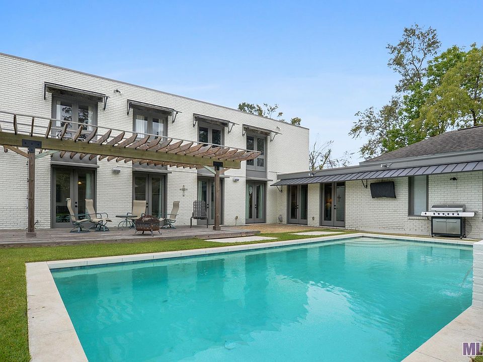 Exquisitely renovated contemporary 3 bed 3.5 bath townhouse sitting on 2 lots with a spacious yard and fabulous renovated gunite heated pool. This late 20th century Bill Hughs masterpiece was built with thoughtful design that you will see in its custom details including reclaimed wood beams from Jax Brewery in New Orleans, three fireplaces, a unique spiral staircase and even an elevator, which certainly raise this home to the next level! The layout is simply extraordinary; perfect for a family or entertaining alike with an open concept for the main living space with 20 ft ceilings, floor to ceiling windows, custom made French doors, a separate family/game room, two bedrooms on the first floor each with their own en-suite bath. The open kitchen boasts slate floors, high-end stainless appliances, Carrera marble counters, ice maker, gas cooktop/oven, pantry and wine closet. Take the spiral stairs or hop in the elevator to reach the second floor, where you will find a lofted living space with built in shelves and a third antique fireplace imported from France - a great space to relax or entertain. The huge master suite is one to envy, with double vanity, soaking tub, separate custom-built shower and spacious closet. Second floor Office with a view. This one of a kind architectural dream is situated as an end unit and boasts a 10 foot fully fenced additional lot lending to privacy and the feel of a free standing home. The outdoor area is anchored by the large pool with water fountains and adjustable LED lighting. Double garage in the rear, which provides for multiple entry points to the house, including a mud room, with a private alley and additional guest parking in the rear as well. Located in the Hill Subdivision, an established neighborhood full of mature live oaks and convenient access to the heart of Baton Rouge; entertainment, the I-10 and I-12 freeways and shopping are minutes away. This is one home that you must see!