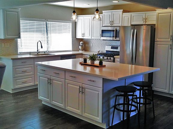 - Completely renovated kitchen, stainless steel appliances, and quartz counters, renovated bathrooms, laminate flooring with carpet in bedrooms.