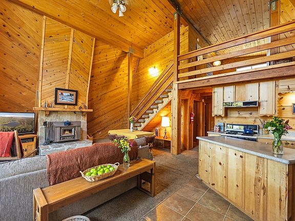 A classic gambrel cabin in the highly desired community of Serene Lakes. Conveniently located on a quiet street, with easy access in and out of the neighborhood. Ski season is just around the corner and the apartment, with a separate entrance, is a great opportunity, offering a private space for guests, caretaker or rental income. Enjoy the views of Castle Peak on the sunny front deck. The cabin offers mountain charm with exposed wooden beams and pine finish throughout. The great room boasts big windows and abundant light, creating an inviting space to gather in front of the stone hearth and wood burning fireplace. The 2 bedrooms on the main level open up to a large back deck, above the private back yard. A spacious loft overlooks the great room, with a primary bedroom and ensuite bathroom upstairs. This well-loved family cabin is ready for you to bring your personal touch and create your mountain retreat. The attached fully-equipped ADU is approx. 600SF, with 1 bedroom, 1 bathroom, kitchen and living area. The partially finished basement is critical for storage of all your mountain gear and toys, or could even be expanded into additional living space. A voluntary HOA membership gives you access to the community beach, events, and boat storage. Close to world class ski resorts, lakes, trails, rock climbing, and just a short drive to Truckee. Endless adventures await as you explore National Forest Land, historical landmarks, hiking, mountain biking, and Royal Gorge XC ski trails. This well-loved family cabin invites you to bring your personal touch and create memories at your mountain retreat.