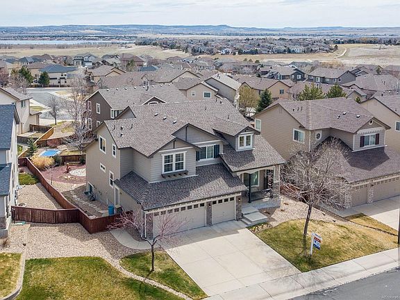 Wonderful 4 bdrm, 3 bthrm home in Trailmark. Light & bright living rm w/ vaulted ceilings & open concept dining rm offering lg windows & a custom chandelier. The gourmet kitchen is a cook's dream w/ hardwood flrs, 42 inch flat panel cabinets, GE Profile Stainless Steel appliances & recessed lighting. Family rm offers plenty of space for all around the gas fireplace! Main flr bdrm could dbl as a study! Main flr also offers a full bthrm & lg laundry rm. The loft is the perfect space for a reading rm! A unique master suite offers a private study area, as well as a custom walk-in closet & 5-piece bthrm w/ a soaking jet action tub, & euro style walk-in shower. Upstrs also offers 2 secondary bdrms & a full bth. Make this home yours w/ the unfinished basement which offers a rough-in bthrm! The unique neighborhood of Trailmark offers 17 acres of walking trails, lakes & community & is surrounded by 1500 acres of open space. Easy on & off to C-470, shopping, lght rail & outdr activities.