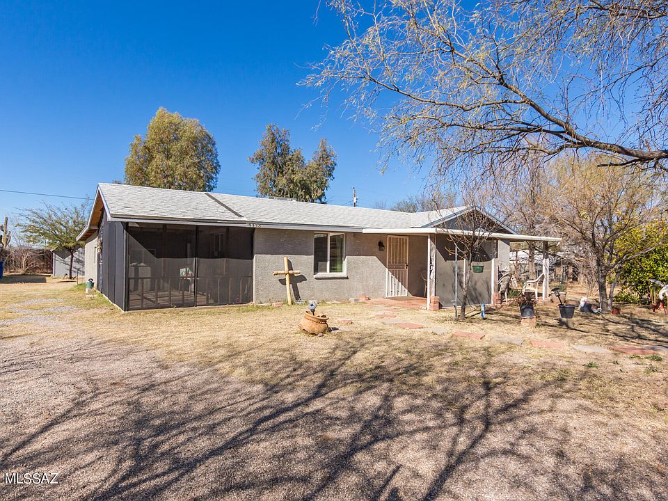This charming property on a large lot is the one you're looking for! You'll be greeted by the welcoming porch as you enter the lovely interior with a comfortable living room showing tile floors and soothing palette. The spotless eat-in kitchen offers plenty of cabinet space and built-in appliances. The large main bedroom features backyard access and a private bathroom for added comfort. You'll find a guest house featuring an eat-in kitchen with tile counters & built-in appliances, living area, and a private bathroom. Separate septic, water and electricity! You'll have an amazing time in the backyard boasting a covered patio, a screened-in patio, storage shed, gazebo, a ramada, and plenty of space for all your toys. Take the opportunity before it's gone!