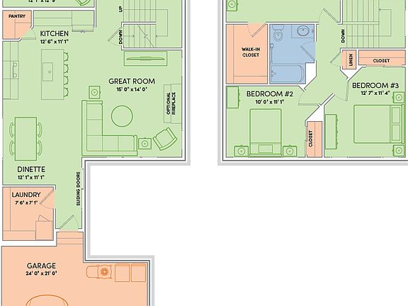 WORK FROM HOME? NO PROBLEM HERE. With its spacious flex room, The Costello offers up the sanctuary you need to balance business with pleasure. Skip the fast food and prep your own gourmet lunch, because why wouldn't you when you have a lovely kitchen pantry to hold all your meticulously organized spices and grains. When you're ready to call it a day, retreat and recharge in your private oasis that is the owner's suite. Take a nice hot shower, apply your favorite face creams, and put on your coziest jammies. Welcome home to The Costello, offering you versatility in an ever-changing world.All prices, promotions and specifications are subject to change at any time without notice based on the discretion of Veridian Homes. Amenities: Award-winning, high-performance home, Custom Auburn Ridge® cabinetry, Energy expert certified, Flex room off foyer, Kitchen open to great room and dining space, Laundry room, located off garage, Open plan, carriage-lane home, Owner's suite features spacious walk-in closet and private bath, Quartz or granite kitchen counters, Smart Home+ technology, Step-in pantry in kitchen, Three upstairs bedrooms