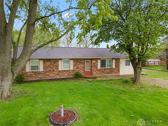Come check out this amazing brick ranch just minutes outside of Eaton! 1 acre lot, fenced in and ready for your family! Previous sellers had converted the garage, adding a fourth bedroom and office room. Totaling to 1300+ sq ft of living space! Enjoy the amazing peace and quiet with open fields surrounding you. The shed in the driveway is included in the sale. Roof was replaced in 2022. Agent is related to seller.