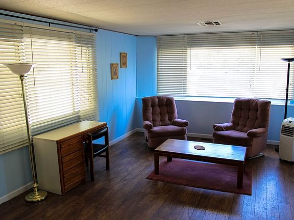 This 2 bedroom manufactured home has been remodeled with laminate wood floors. Nice covered porch on good size lot located on cul-de-sac. Large covered patio in back and partially fenced yard. All kitchen appliances. Washer and dryer included 'as is'. Built-in desk in 2nd bedroom with built-in drawers in main bedroom. Storage sheds. Gas heat and a/c. Small pet negotiable with approval, deposit and $25 per month additional rent. No smoking. Year lease preferred. May be available sooner.
