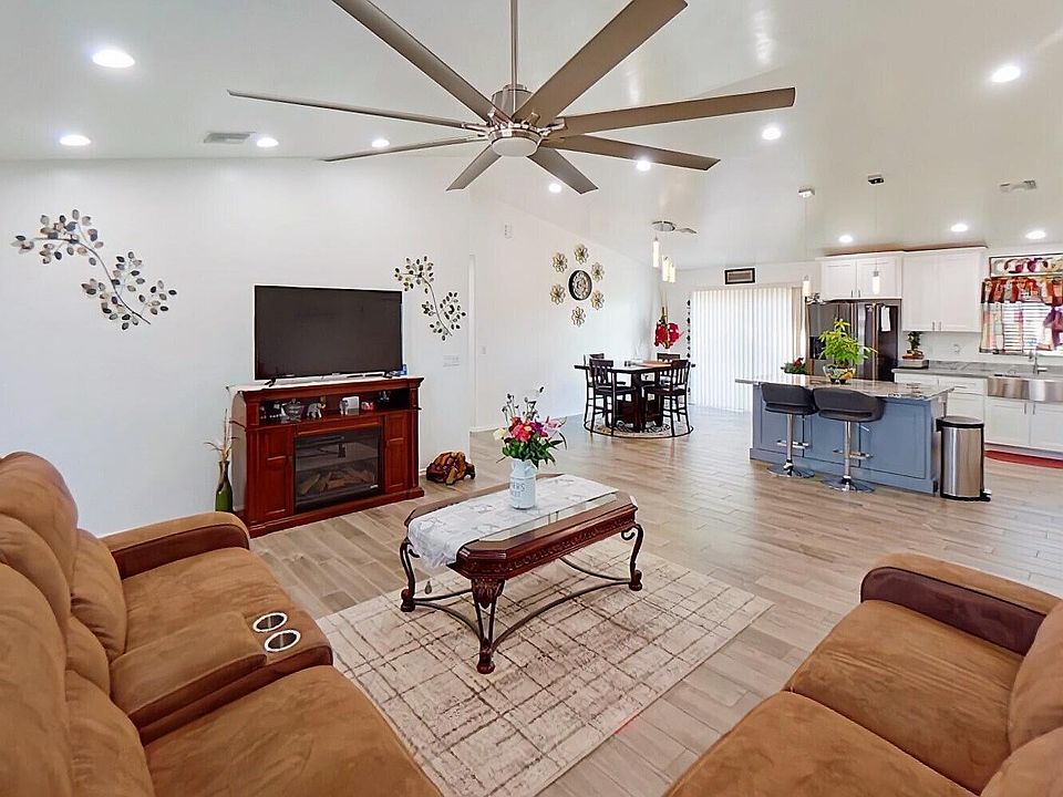 A REWARDING ESCAPE PEACEFULLY SITUATED!! Absolutely Gorgeous 3 Bedroom, 2 Bath 2 Car Garage home resting on 1.3 acre corner lot. This 1550 sq ft home built in 2020 shows quality and attention to detail throughout. Spacious Great room concept with wood plank porcelain tile flooring, stylish light fixtures and modern fans. Beautiful kitchen with Granite counters, Stain Steel appliances, island, white cabinetry, Farmhouse single Bowl Stainless Steel sink, reverse osmosis system and dining area. Good size Master suite with walk-in closet. Master bath with double sinks, granite counters, beautiful tile shower and separate Jacuzzi tub. Additional 2 bedrooms plus guest bath with Granite counter and shower/tub combination. Spacious 2 car garage with space for storage and door to access the