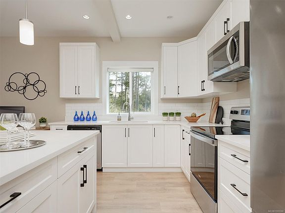 Stunning residence nestled on a peaceful cul-de-sac backing onto beautiful green space! The main level of this residence features an open concept floor plan, large kitchen island with quartz countertops, with a spacious and covered back patio overlooking the backyard and distant greenspace! Upstairs has three bedrooms including the primary bedroom with 4-piece ensuite and walk-in closet. This impressive residence also features a double garage, hot water on demand, and bonus self-contained one bedroom suite above the garage offering plenty of separation and privacy as a mortgage helper. Walking distance to the new school on Latoria opening in September. Steps away from Willing Park and Olympic View golf course. Move in ready, quick possession possible!