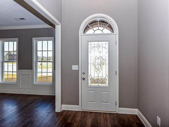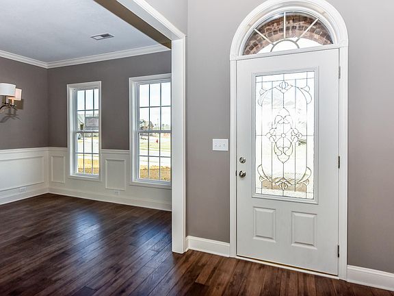 The Jackson II is a spacious five bedroom home with a side entry garage on a corner lot! Downstairs features a guest suite with bay window and full bathroom. The two story foyer has a railed overlook above, and encompasses a stairway with a feature window over the landing. The family room and breakfast overlook the rear yard, and the centrally located kitchen is open to all main living areas of the home, for good traffic flow and entertaining. A large pass-through utility room/mudroom is located on the first floor, and accesses a back hallway convenient to the powder room and kitchen. Nine foot ceilings throughout the first floor are included. The upstairs master suite includes a very spacious bedroom with a trey ceiling, and a luxury bath with his-and-hers vanities, linen closet, enclosed commode, garden tub, and a 4' shower, adjacent to a roomy closet. Additional luxury bath options are also offered on this plan. Three additional bedrooms, one with a large walk-in closet, share a hall bath. Exterior plan details include a front porch, shake siding accents, and true radius head windows.