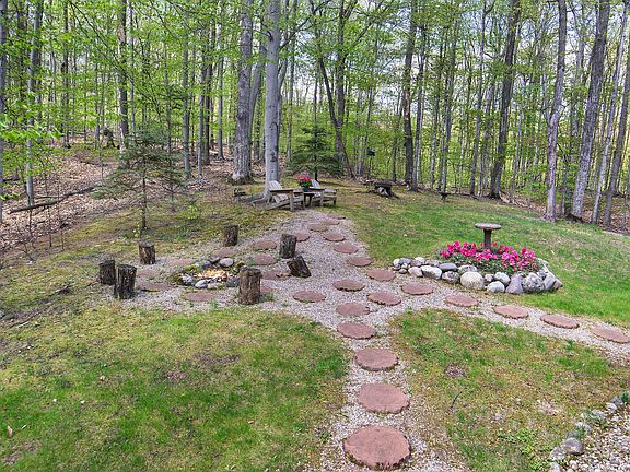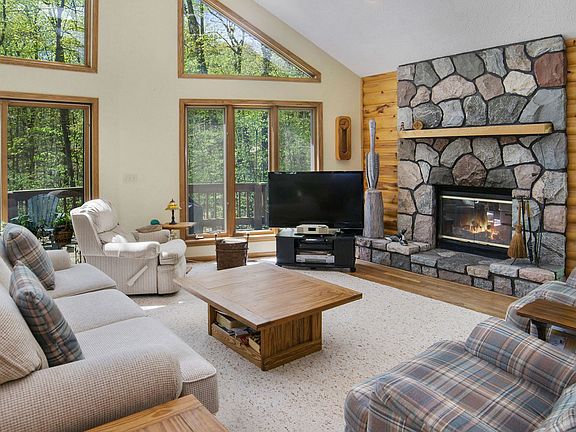 On a quiet cul de sac sits 1.6 acres of wooded, rolling land with a 4 bedroom, 3 bathroom chalet adjacent to the largest common area in Michaywe. The common area includes a portion of one of the cross country ski trails. Also, snowshoeing and nature walks are at your doors. For additional activities, the Lake Golf Course is a 3/4 mile drive and the Clubhouse includes 2 swimming pools, a restaurant, and two large Banquet rooms. There is also tennis courts just feet away from the clubhouse building.
