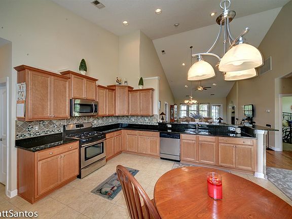This is a house you do not want to miss and probably one of, if not the best lot in Brighton Lakes! This house is the Marion Floorplan with high vaulted ceilings and an open concept. Split bedroom floorplan with the master on one side and the other 2 rooms, plus the office/study on the other. Once you walk in the front door, you will see the upgrades! Kitchen includes a breakfast nook, breakfast bar, granite countertops, tile in both the kitchen and foyer, stainless steel appliances, natural gas range, tile backsplash, and a large pantry. Right off the kitchen, before entering the garage, is the laundry room with tile flooring. The family room has high vaulted ceilings, hardwood floors and a ceiling fan. Master bedroom also has vaulted ceilings, walk in closet, ceiling fan and extra two windows to allow more natural light. Master bedroom has a great view of the lake and two fountains! The master bathroom consists of two walk in closets, a linen closet, his and her sink, raised vanity, tile, and a separate tub and shower. Owner has also added hardwood in the office/study which is right off the family room and overlooking the big part of the lake and two fountains. Other two bedrooms have ceiling fans and the 2nd bathroom has a tub/shower combo and tile flooring. The upgrades continue on the outside of the home also! Brick Veneer and hardy plank siding, upgraded landscaping with palm trees, and river rock stones in the flower beds. One last upgrade on the outside is the large screened in porch with tile flooring overlooking the lake. There is a concrete slab off the screened in porch for grilling and more room to relax and enjoy the view! This is one of the best lots in Brighton Lakes and a great deal! Move on this one fast!