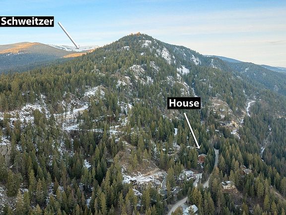 Tucked into the hillside, this warm and inviting home feels like a true retreat, offering a peaceful forest setting with stunning lake and mountain views. Stone accents and terraced walkways blend beautifully with the natural surroundings, while multiple outdoor spaces provide the perfect spot to relax and take in the scenery. Thoughtfully designed with expert craftsmanship, the home features custom cherry, maple, and birch cabinetry, built-ins, and expansive windows that capture the breathtaking landscape. The well-appointed kitchen and dining area open to the terraced backyard, while the living room on a separate level leads to the spacious deck—both outdoor spaces seamlessly connected for effortless entertaining. The private primary suite offers a walk-in closet and en-suite bath with a soaking tub and separate shower. A unique four-car garage—two bays deep—provides extra parking, storage, or workshop space. Located just outside Sandpoint city limits, this home offers privacy while remaining close to town, with quick access to the Schweitzer Ski Shuttle. Ideal as a full-time residence, year-round getaway, or short-term vacation rental.