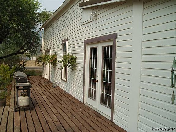 Accepted Offer with Contingencies. Older home charm with many updates. Newer vinyl thermal windows, metal roof, veranda encompassing 3 sides, shed shop with lean-to for storage, fir flooring, free standing gas log stove, office area, and tongue and groove siding. Lot has room for larger shop. A must see!