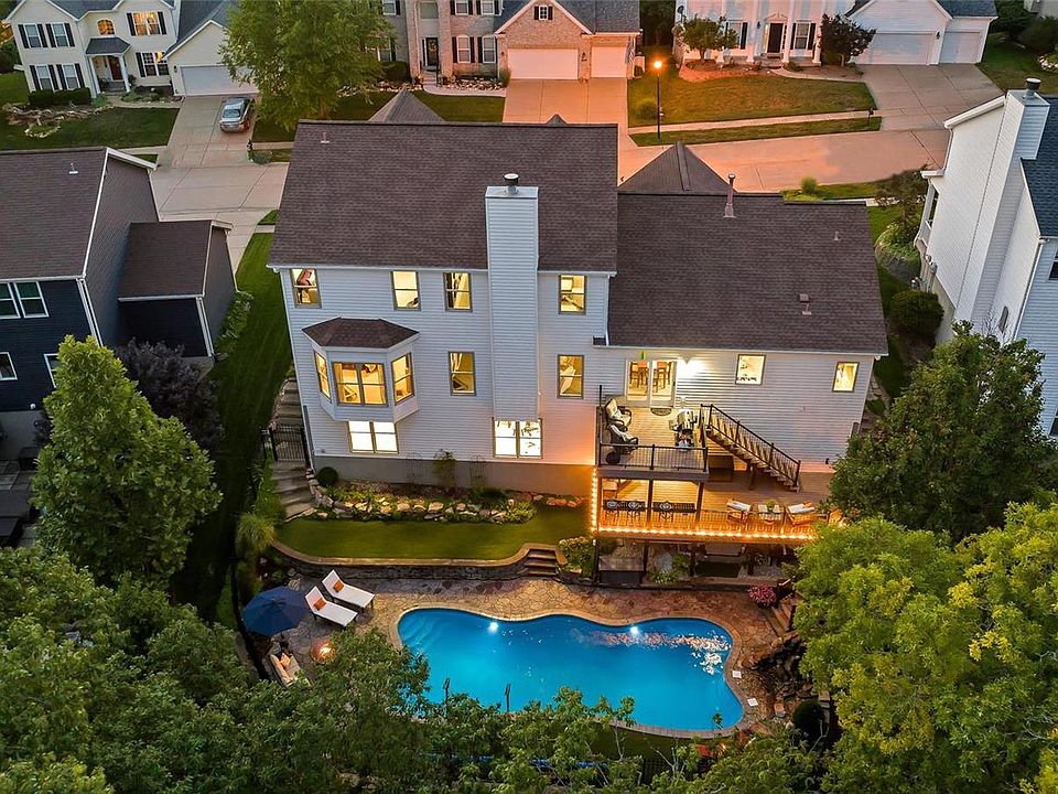 A private oasis awaits you in this 4bed, 3.5bath 1.5 story home nestled on a private culdesac in the prestigious Legends neighborhood. You'll be immediately impressed when you pull up and notice the oversized composite deck front porch. Entering the home is a beautiful foyer open to the dining room, greatroom, and main floor primary bedroom. The kitchen opens to the greatroom and features a huge pantry and a butcher block built in hutch. Each room gives its own unique beautiful view of the yard. Upstairs you will find a huge loft area, 3 additional bedrooms, and a jack & jill bathroom. The finished lower level features a theatre area, another full bathroom, workshop area, and more finished space to spread out while you entertain. The backyard is the truly the star of this show! Double decker composite decks, dining ledge/bar, water features, maintenance free grass, huge inground pool, PLUS a retractable screen to enjoy movies/tv/sports from the pool! Do not miss out on this gem! Additional Rooms: Mud Room