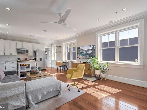 Welcome to the Adrienne! This sunny 2-bedroom, 2 full bathroom condo is situated in Brightwood and within minutes of the newly developed Parks at Walter Reed. With a fully renovated kitchen (gas stove, quartz countertops) and two renovated bathrooms, along with an ideal layout for maximal privacy, stunning hardwood floors, and massive southern-facing windows, this unit offers comfort in style. Additional amenities include: 9-ft. tall ceilings, charming crown molding, Nest thermostat and Smoke Detectors, custom blinds throughout, Sonos surround-sound Bluetooth system, custom closets designed for optimized storage, new laundry machines (2024), new HVAC system (2020), and refinished utility closet with tile flooring. Keep your monthly payments low as the Seller has already covered all 2025 HOA payments! Nearby the following grocery stores: 5-minute walk to Walmart, steps away from FRESHFARM Uptown Farmer's Market, 5-minute drive to Safeway, 7-minute drive to Whole Foods. Nearby the following public transportation: 1-minute walk to 70 Bus (Silver Spring, L’Enfant Plaza), 5-minute walk to 54 Bus (Takoma, Metro Center), 7-minute drive to Fort Totten metro. Need some green space? Take a short ten-minute walk to enter Rock Creek Park.