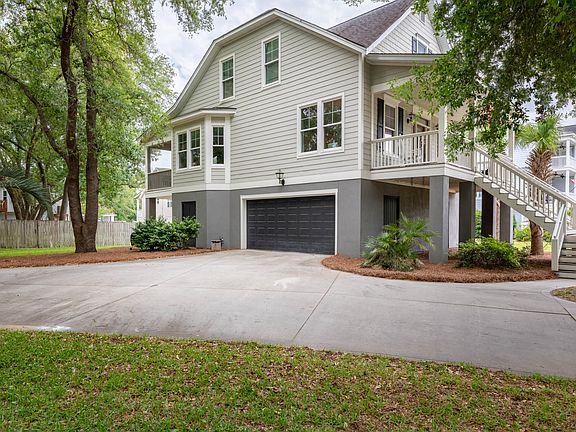 A beautiful elevated lowcountry home nestled among the quiet sidewalks and mature oak tree lined streets of one of James Island's most desirable neighborhoods, just minutes away from Folly Beach and downtown. Walk up the front steps to a full front porch with views of the neighborhood and the lake across the street. Open the elegant front door to 9 foot ceilings and an open floor plan with kitchen overlooking the main living area. The light filled kitchen has granite counter tops, stainless steel appliances, and custom cabinets. The living room has custom built ins alongside the contemporary fire place. There is also a private, separate dining room perfect for entertaining with access to a screened in porch overlooking the large private yard. The downstairs living areas all have site finished red oak floors and crown molding. The downstairs master bedroom has a walk in closet and large master bath with tile throughout. The spa like bathroom contains dual sinks, walk in shower with shower bench, and separate tub. Upstairs are 3 additional spacious bedrooms with walk in closets and a full bath. There is plenty of extra storage space upstairs and in the attic. The elevated construction also provides a 2 car garage with plenty of additional space for extra storage, a workshop, home gym, or entertaining. One time HOA fee.