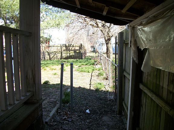 Exterior Features:Shingle roof in fair condition. Brick and vinyl siding exterior in fair shape. Wood windows are intact. Interior Features:Three bedroom and one and a half bathrooms with 1,508 sq ft. Kitchen has sink cabinets and counters, a freezer, a fridge, and a gas oven. Flooring in house is vinyl and carpet. Bathroom has no toilets. Tub and sink present. Drywall needs patching and painting. Gas furnace and gas water heater. No a/c. Plumbing and wiring intact. Rear door was boarded up previously.