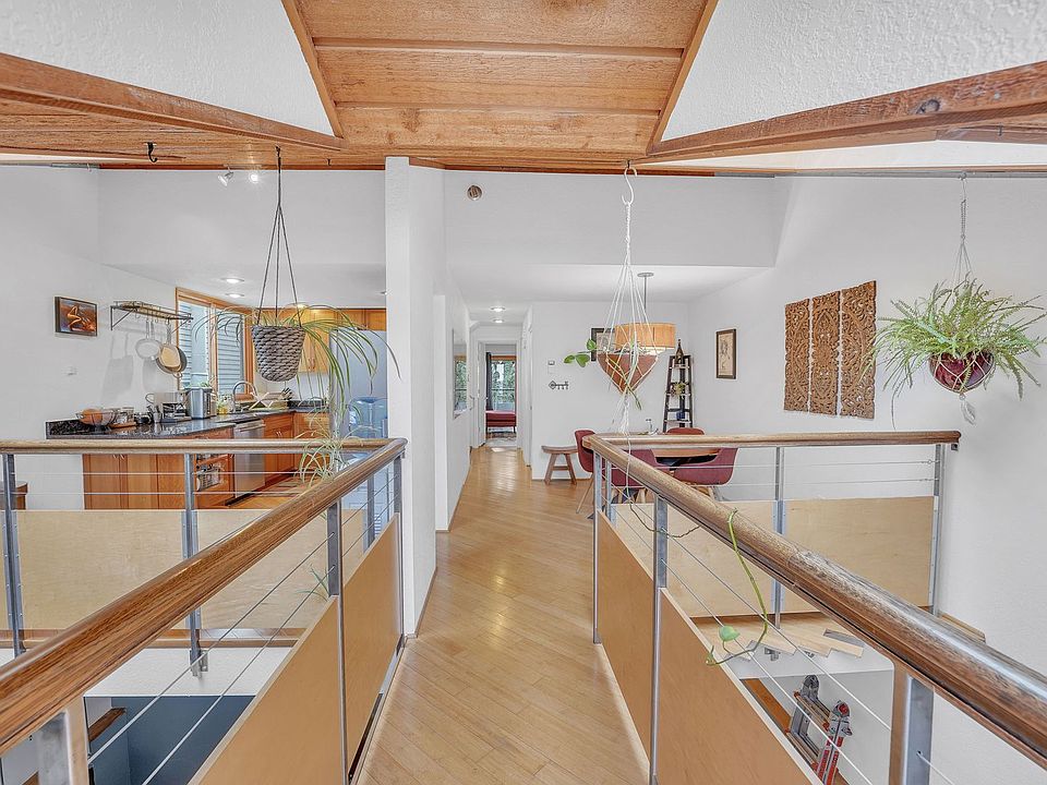 Contemporary, chic home, just blocks from Green Lake! This property boasts a top-floor primary suite, a loft, and a spacious deck. The home is equipped with modern stainless steel appliances and a wood-burning fireplace. It features air conditioning, ensuring a comfortable living environment in Seattle's hotter months! The home comes with a carport and additional street parking. It's close to a variety of bars and restaurants, making it an ideal spot for those who enjoy a vibrant lifestyle.