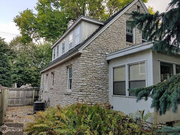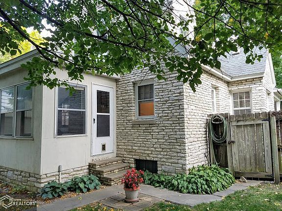 An Architectural Gem! One of only a few Mason City Fully Masonal Stone Exterior homes. Built in 1941, this Solid home features the woodwork, hardwood floors, and character of the period, with the conveniences of modern living. Main level living room with fireplace. Full bath on main and upper. One bedroom on main, and 2 bedrooms upper. Full wall of wood built-ins in upper for great storage. Rear enclosed porch, overlooking nice sized fenced in rear yard, 2 stall garage, and a separate workshop building. Unfinished lower, but great potential. Lower level workshop room too. Just a block to Monroe Park and walking track.