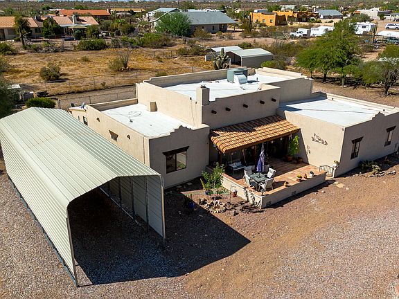 Discover this beautifully updated and meticulously maintained home on a spacious 1.25-acre lot, featuring breathtaking views of the Superstition Mountains! As you enter, you'll be welcomed by soaring wood-beamed ceilings, creating a grand sense of space. The bright Great Room, complete with a cozy wood-burning fireplace, seamlessly flows into an open-concept kitchen - perfect for gatherings and relaxation. The kitchen is a showstopper with stunning quartz countertops, designer cabinetry, and sleek stainless steel appliances. Unwind on the serene covered patio, designed for ultimate comfort and enjoyment. Additional upgrades include smart shades, a smart thermostat, a CCTV security system, and a separate mini-split heating and cooling unit for the back room. Ideal for RV enthusiasts, the property also features a large covered parking structure. This home is truly a rare find!