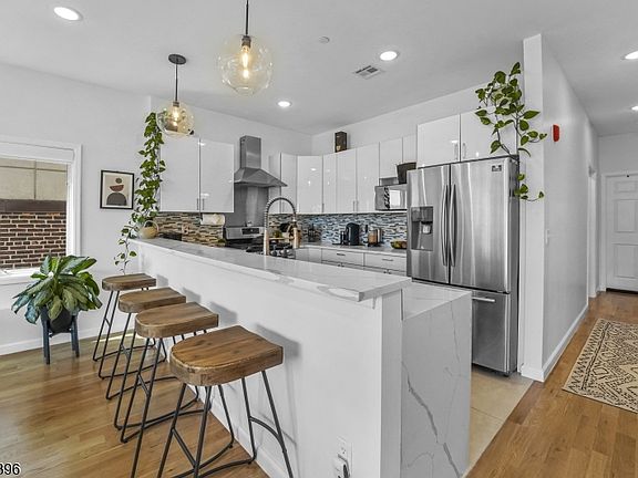 Welcome to luxury living in the heart of Jersey City. This stunning 2-bedroom, 2-bath residence in Journal Square combines sophisticated design with modern convenience, offering 1,044 square feet of elegant living space. Step inside to discover a beautifully appointed custom kitchen featuring quartz countertops, a designer tiled backsplash, stainless steel appliances, and an oversized breakfast bar illuminated by chic pendant lighting?perfect for casual dining or entertaining. The open-concept living and dining areas are filled with natural light from expansive floor-to-ceiling windows and a sliding glass door leading to your private terrace?ideal for enjoying serene morning coffee or evening city views.The spacious primary suite offers a true retreat with a custom walk-in closet and a spa-inspired bathroom featuring a dual-sink quartz vanity, walk-in shower, and heated porcelain floors. A Samsung washer and dryer, gleaming white oak hardwood floors, and recessed lighting throughout add to the home?s modern, move-in-ready appeal. Enjoy the convenience of private parking, elevator access, a dedicated storage room, and a 24/7 video security system for peace of mind. Perfectly situated, this boutique building is just moments from the Journal Square PATH station, offering effortless access to Manhattan, along with a vibrant selection of shopping, dining, and entertainment nearby. Contemporary. Refined. Effortless. Experience the best of Jersey City living at 936 Pavonia Avenue.
