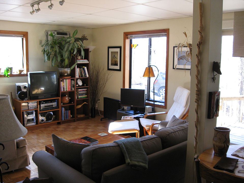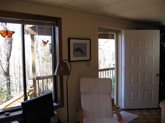 Quiet 2 BR apt on first level of house, separate entrance and parking on opposite side of house from upstairs entrance, wooded setting on 7 acres at end of road off of Mann's Chapel Rd, large deck, screened porch, many windows, good light, washer/dryer, fenced garden. Wood stove. 11 miles to UNC campus. Good match for post-doc, grad student who values privacy, peace and quiet, and nature. Pets negotiable. Lease term 1 yr., Utilities: Electric cost is a flat $60/mo., gas cost dependent on usage (very energy efficient space), water included. Not furnished except for appliances including washer/dryer. I hope to rent to a single tenant. Grad students and people doing post doc work have been very happy here. Garden is large and productive.