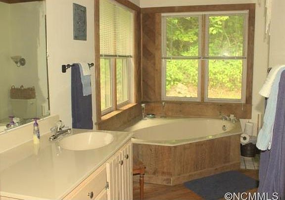 Don't pass this by because it doesn't look rustic from outside. Lots to admire when you step inside- rustic accents such as hardwood floors, wood beam ceiling, wormy chestnut trim, wood burning stove. Bay windows in living room and kitchen, spacious bedrooms. Garden tub in master bath w/separate shower & walk-in closet. Hot tub on deck. Listen to the bold stream (not on property) from the deck. Lots of privacy, good access. Geo-thermal heat system.