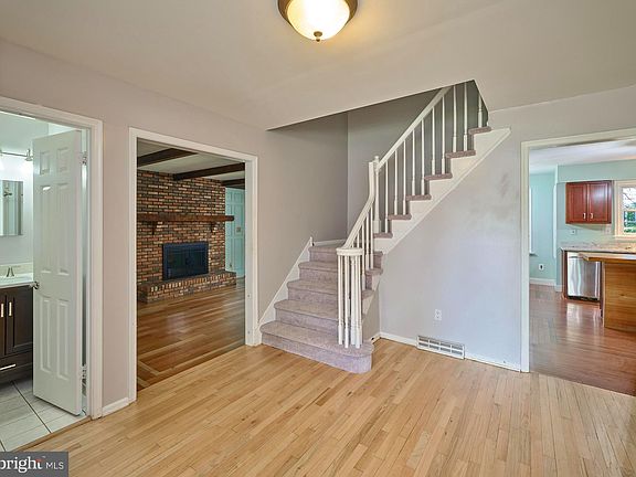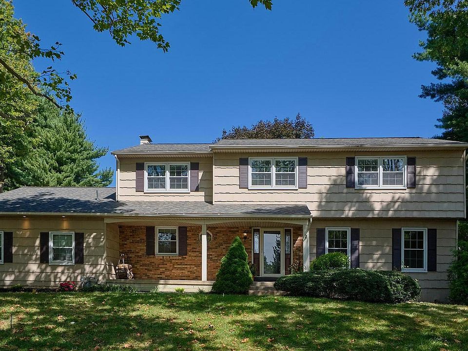 Edgebrook colonial in Yardley features a rocking chair front porch. Upon entering you are greeted by a spacious foyer with hardwood flooring providing views of the living room, family room and kitchen. Several of the floors on this level have been recently refinished (8/24). The living room is bright and sunny with hardwood flooring and is open to the formal dining room which features chair rail with wainscoting below, and crown molding. The eat-in kitchen features hardwood flooring, granite counters with undermount stainless steel sink, plentiful cabinetry, custom island, craftsman styled lighting fixtures, built-in microwave, and gas cooking. The family room has custom floor to ceiling wainscoting in a soothing palette. The centerpiece of this room is the full height brick fireplace and beamed ceiling. The bay window brings in ample lighting and a door leads to the rear screened in porch. Also on this level is a remodeled powder room and a laundry room with access to the side entry garage. The upper level features 4 bedrooms and 2 full baths and features new carpeting (8/24). Several of the bedrooms have been painted. The primary bedroom features a large fitted out walk in closet, dentil crown molding, a spacious sitting room with closet , and a full bath. The remaining three bedrooms feature spacious closets and neutral carpeting. A large basement features vinyl plank flooring in the finished area. This finished area has tons of shelving as well as cabinetry for storage, crafts, and hobbyists. The unfinished section of the basement features additional shelving - including wine storage, and a small work station/bench. Great location for commuters - easy access to 95, 295 and Septa rail transportation. Close to the center of Yardley with restaurants, shops and of course the Delaware River and towpath.