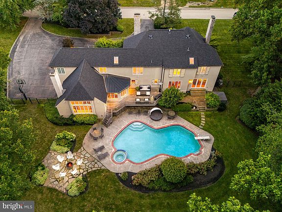 Welcome to 936 Roscommon Road, a stunning Colonial-style home in historic Bryn Mawr, offering over 5,000 sq/ft of luxurious living space with 5 bedrooms, 4 full baths, and 3 half baths. This private estate, nestled on over an acre of lush grounds, makes a grand first impression with its horseshoe drive and manicured landscaping. Step inside a light-filled 2-story foyer that opens to the formal living room, featuring a gas fireplace, coffered ceiling, and hardwood floors that extend throughout the main level. The adjoining office provides a quiet and sophisticated workspace enhanced by a coffered ceiling and wainscoting, as well as access to the slate patio with hot tub — a perfect place to relax after a long day. The formal dining room, complete with picture frame molding and chandelier is a sophisticated space to dine, and the adjoining Butlers Pantry makes entertaining a breeze. Across the foyer is a cozy sitting area with a gas fireplace and sliding glass doors leading to another slate patio, perfect for enjoying your morning cup of coffee. The adjoining gourmet kitchen is a chef's dream, boasting raised panel cabinetry with crown molding, granite countertops, tile backsplash, a butler's pantry, built-in desk, an oversized island with seating, and high-end appliances, including a paneled refrigerator, double wall ovens, and a six-burner gas range. The bright and sunny dining area, with French doors leading to the deck, flows seamlessly into the adjoining family room featuring a vaulted ceiling, a gas fireplace with built-ins, an oversized window with bench seating, as well as another set of French doors opening to the back deck, creating a perfect gathering space for family and friends. A convenient laundry room and two half baths complete this level. Upstairs, the open landing leads to the spacious primary suite, a luxurious retreat with a wood-burning fireplace, built-in shelving with bench seating, and a spa-like bath. The primary bath indulges with a dual vanity, make-up vanity, glass-enclosed shower, and a separate jetted tub. Three additional bedrooms with recessed lighting, ceiling fans, ample closet space, and two full baths, including a "Jack and Jill" with skylight, and a full hall bath with glass-enclosed shower/tub combo & dual vanity, complete the second level. The fifth bedroom is a cheery suite, above the 2-bay garage, with its own full bath, and is perfect for a guest, au pair, or in-law suite. The finished basement provides additional flexible living space, including a media room, exercise room, half bath, and ample storage space. Out back, discover your own private oasis. The expansive outdoor space features a wooden deck and slate patio, a heated saltwater in-ground pool with hot tub, and plenty of space to lounge and entertain in a serene setting. Located on the distinguished Main Line, this home is within the award-winning Lower Merion School District. Enjoy easy access to Conshohocken State Road and I-76, with major shopping, restaurants, golf courses, and all that Bryn Mawr has to offer. Don't miss this incredible opportunity to live in this truly spectacular home!