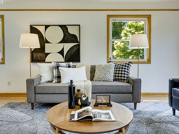 OPEN SATURDAY & SUNDAY, 6/14&15, 12-2! Step into the timeless charm of this beautifully maintained Classic Mt. Tabor Ranch! Fresh new interior paint throughout brings a crisp, modern feel. Gleaming hardwood floors add warmth and elegance. You'll love the 1950’s details: Roman brick planter and split facade, glass block sidelights at the entry, arched doorways, coved ceilings, Mahogany woodwork and stunning deco mantle, knotty pine paneled bar. The floorpan supports your lifestyle with the public rooms in front ( the huge light-filled Living Room, generous formal Dining Room, comfortable eat-in Kitchen) and the private rooms off the hallway in the center of the main level. The lower level offers ample storage and wonderfully flexible space, just right for a home gym or games room. The Family room echoes the spacious formal Living Room - making it the perfect Rumpus Room, or ideal private retreat! Just wonderful mid-century design! This property offers easy living with an attached garage, private fenced garden, covered patio, bright corner lot, and excellent access to Mt. Tabor park and SE Portland amenities! You will love living here!