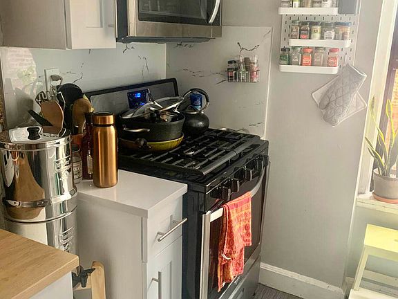Charming unit located in the heart of Crown Heights Closets throughout Ss appliances with lots of cabinet space Separate large living area King sized bedroom This won't last !