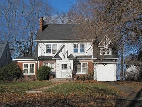 Situated in a friendly neighborhood, this four bedroom Colonial features a brick wood burning fireplace in the living room, formal dining room, family room with french doors, galley type kitchen with nook, hardwood floors under new carpeting in living room and dining room and bedrooms with exposed hardwood floors. One car built-in heated garage with brick arched ceiling and a two-car detached garage with side street entrance. An unfinished walk up attic has expansion possibilities and an unfinished basement.